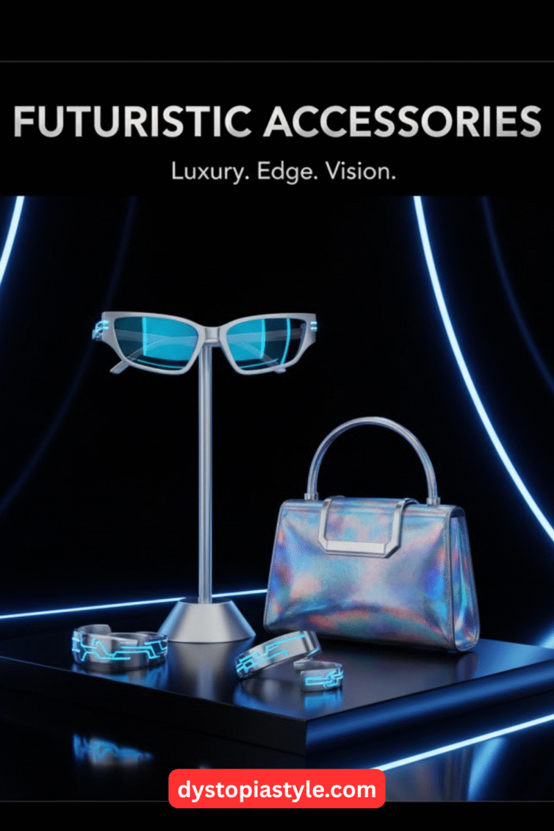 What accessories complement futuristic outfits? Smart watches, AR glasses, and modular bags enhance the high-tech vibe.