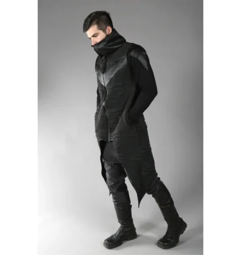 Fast-forward to the 21st century, and the rise of tech giants has propelled this evolution. The 2010s saw the emergence of techwear, popularized by brands like Acronym and Nike, which integrated waterproof membranes and ergonomic designs for urban adventurers. Today, in 2025, futuristic fashion for men has matured into a mainstream movement, blending cyberpunk vibes with sustainable practices. Influences from video games, virtual reality, and AI have led to garments that interact with wearables, such as smartwatches or AR glasses.