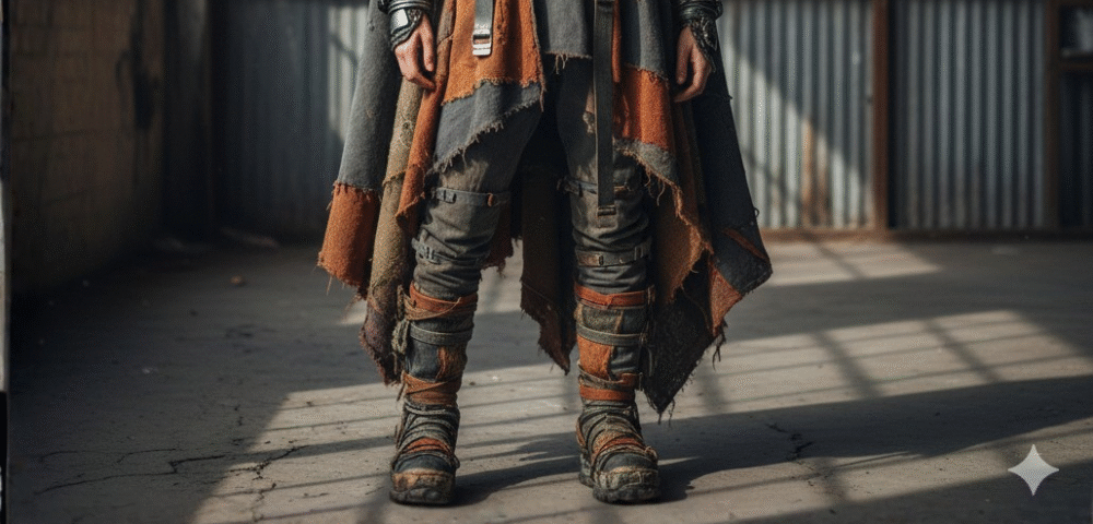 High fashion isn’t far behind. Collections from Techwear Storm feature dystopian clothes with recycled elements, including cyberpunk jackets and wasteland pants. Runway shows, such as Deadwood’s 2024 Spring/Summer line, highlight upcycled leather and patchwork in desert-dystopian themes. Even mainstream influences, like costumes from Dune or Aliens, inspire recycled versions shared on Reddit.